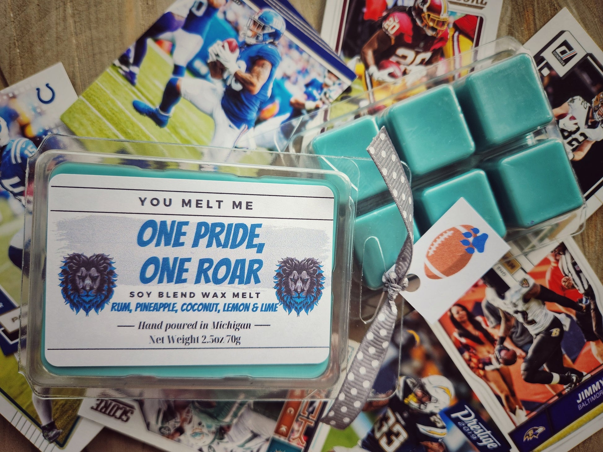 Are you ready for some Lions football??? We here in Michigan are ready and we are ready to support those boys in Honolulu Blue and gray all the way to the super bowl. Did you know, that when football season hits, there's a popular cocktail that comes alive. It's called the Honolulu Blue, and this melt captures that fruity drink- rum (or vodka), lemon, lime, coconut and pineapple.