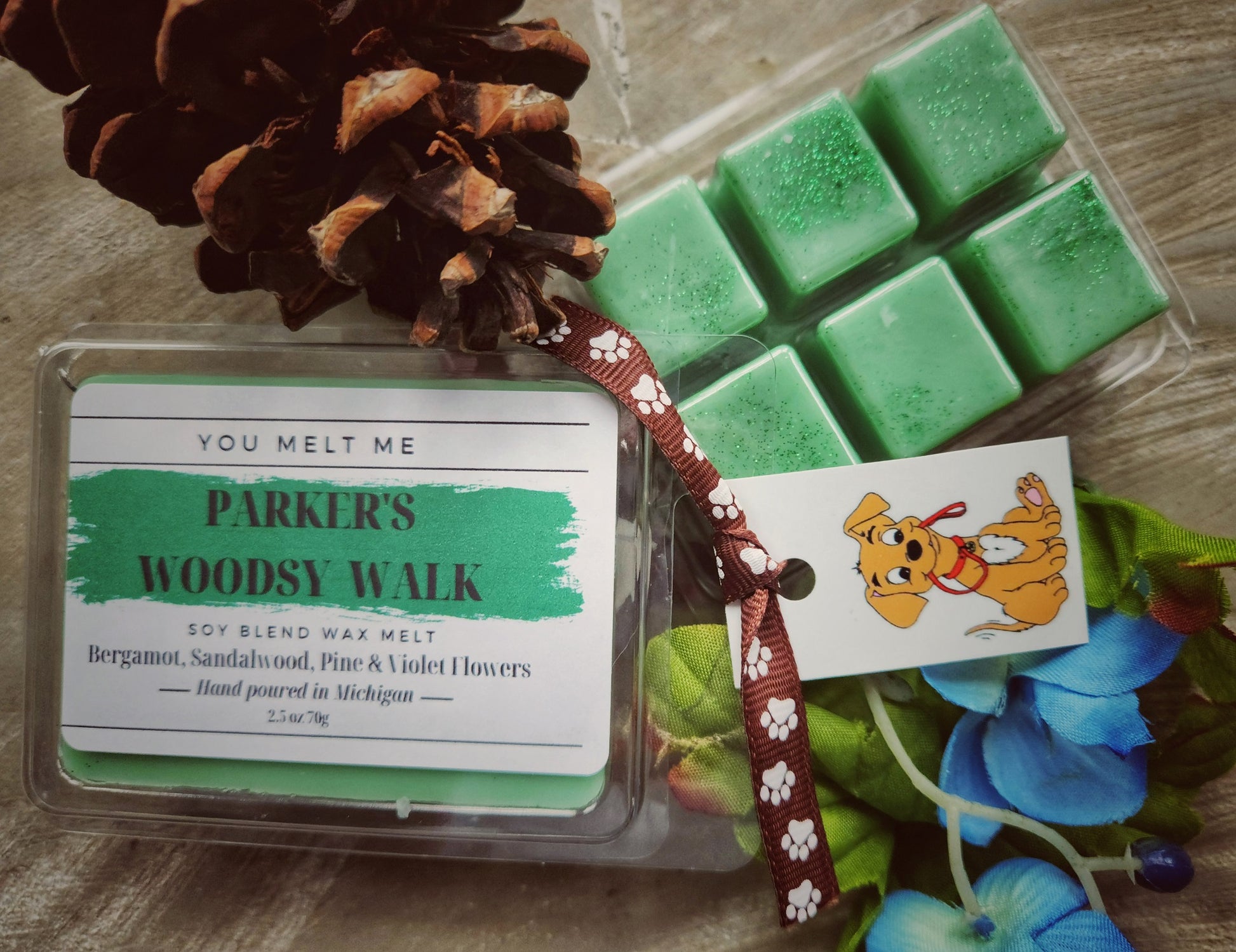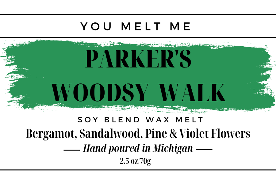 Nothing beats a walk in the woods when things begin to grow and bloom or after a rainfall. Parker's Woodsy Walk captures that scent perfectly. Notes of bergamot, sandalwood, pine and violet flowers will make you as happy as a pup walking in the woods sniffing all the smells!