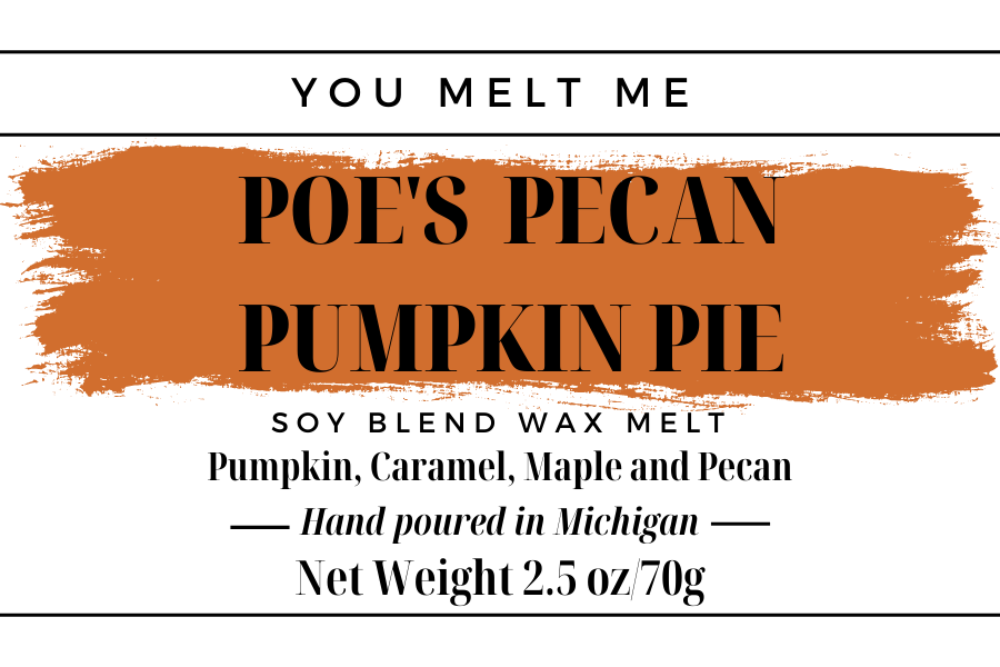 Pumpkin pie, you love it or you hate it. You slather it in whipped cream or its perfect as it is. Well, either way Poe's Pecan Pumpkin Pie smells amazing. The scent of pumpkin, caramel, maple and pecan is that perfect mix for those who like pumpkin, but not an overpowering pumpkin.