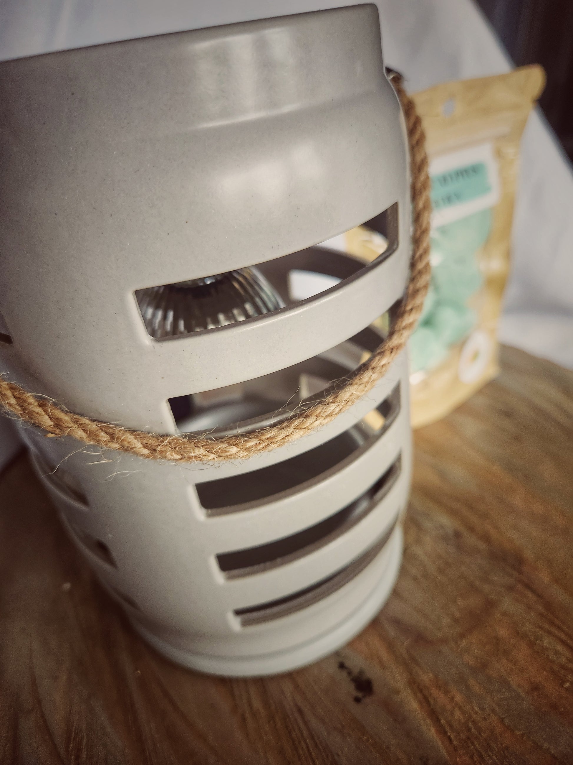 - DESIGN: Add beautiful fragrance to your room with the Shutter Lantern Canopy Illumination Warmer. The stunning lantern features a shutter motif and rustic rope handle. A halogen bulb warms wax melts in the warming dish from the top down releasing fragrance into your home.
