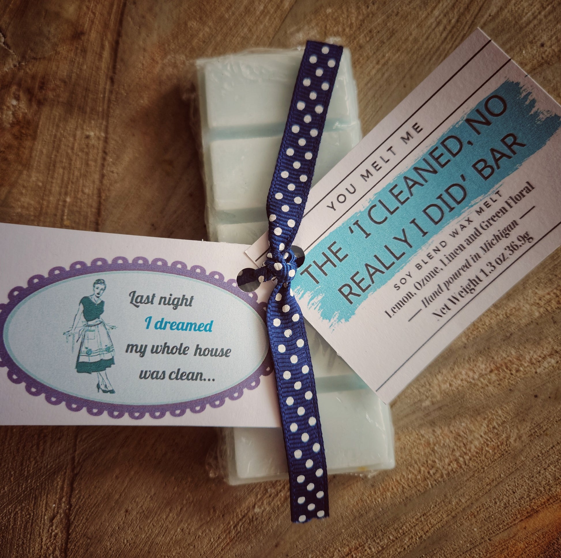 Cleaning the house just can be too much of a chore. However, when your home smells like stinky dog or smelly feet, you know you have to do something. Well, let the "I Cleaned, No Really I Did Bar' help you out. This simple wax melt can help eliminate those stinky odors. The scent technology used in this special fragrance oil helps capture the stink and replace it with a clean, fresh scent. Plus it has no nasty chemicals in it like you might find in some wall plugs ins. The aromas of lemon, ozone and green floral can buy you some time until you do feel motivated to clean.