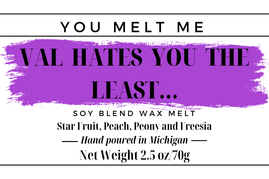 Oh Val, she's not a fan of Valentine's Day, but I think you'll be a fan of this scent! A mix of star Fruit, peach, peony and freesia- it's fruity and floral and fabulous!